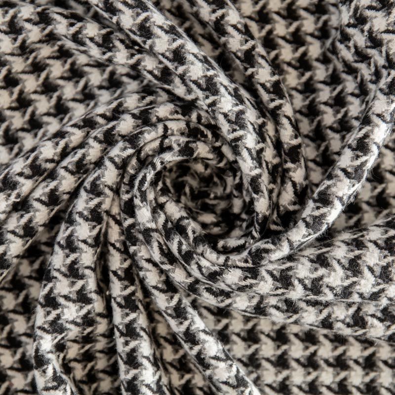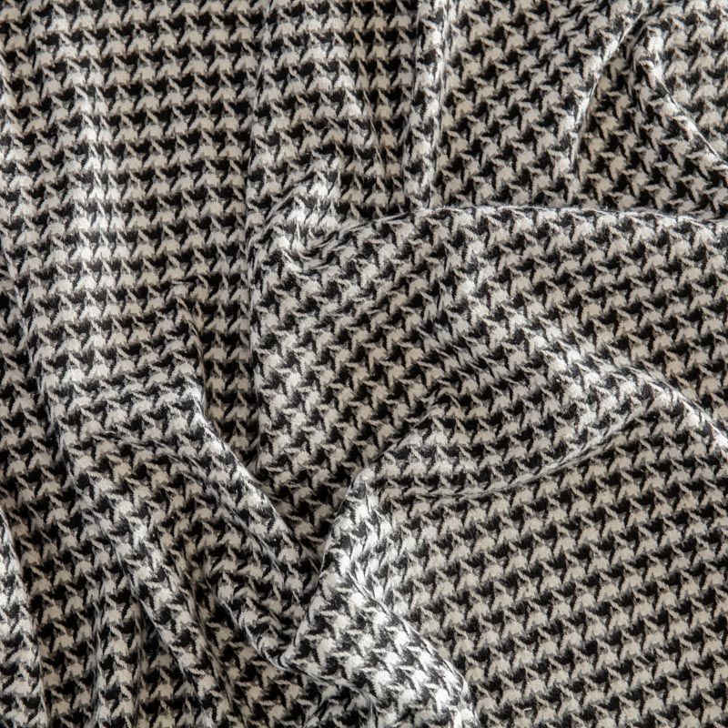 Плотная пальтовая ткань с добавлением вискозы белого оттенка в черно-серую куриную лапку, мягкая и приятная на ощупь, формоустойчива, хорошо драпируется. Ткань отлично подойдет для пошива пальто, теплых костюмов, юбки, шорт, жакета, кейпа, жилета.