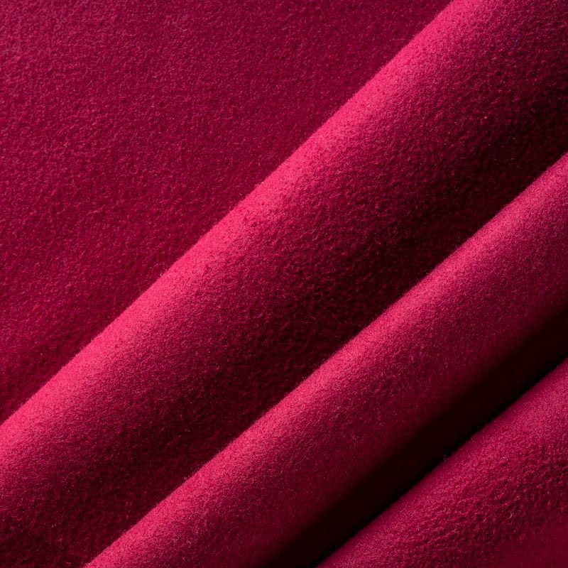 Плотная пальтовая ткань с коротеньким мягким ворсом на лицевой стороне и ровная на изнаночной. Она легко раскраивается, не скользит и не осыпается на срезах. Прекрасно подойдет для пошива женских пальто, теплых костюмов, кейпов, мягких бомберов, жилетов и головных уборов.