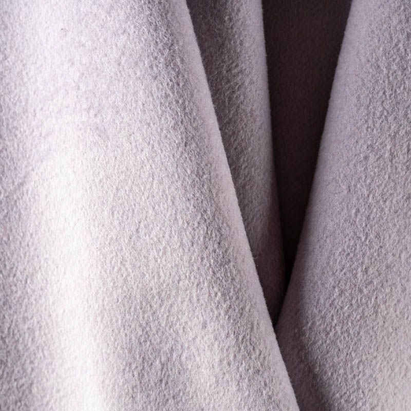 Плотная пальтовая ткань с коротеньким мягким ворсом на лицевой стороне и ровная на изнаночной. Она легко раскраивается, не скользит и не осыпается на срезах. Прекрасно подойдет для пошива женских пальто, теплых костюмов, кейпов, мягких бомберов, жилетов и головных уборов.