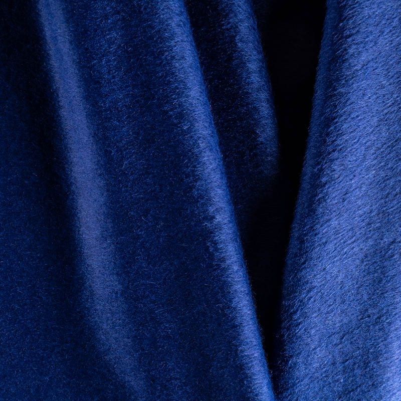 Пальтовая итальянская шерсть в синем оттенке. Ткань плотная, достаточно теплая, комфортная для одежды на сезон осень-зима. Полотно ворсистое, имеет «мохеровый эффект». Учитывайте направление ворса при крое изделия. Мягкое и нежное на ощупь, не толстое и не тяжелое, хорошо держит форму. Прекрасно подойдет для пошива женских пальто, теплых костюмов, кейпов, мягких бомберов, жилетов и головных уборов.