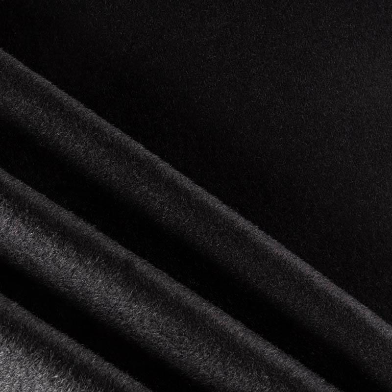 Пальтовая итальянская шерсть в черном цвете. Ткань плотная, достаточно теплая, комфортная для одежды на сезон осень-зима. Полотно имеет средний ворс. Мягкое и нежное на ощупь, не толстое и не тяжелое, хорошо держит форму. Прекрасно подойдет для пошива женских пальто, теплых костюмов, кейпов, мягких бомберов, жилетов и головных уборов.
