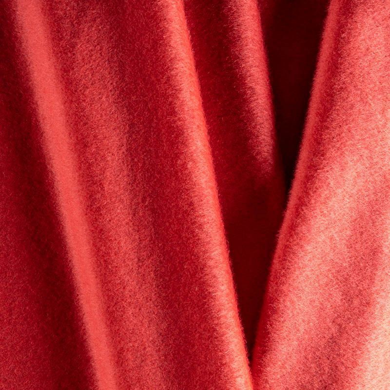Пальтовая итальянская шерсть в красивом красно-коралловом оттенке. Ткань плотная, достаточно теплая, комфортная для одежды на сезон осень-зима. Полотно ворсистое, имеет «мохеровый эффект». Учитывайте направление ворса при крое изделия. Мягкое и нежное на ощупь, не толстое и не тяжелое, хорошо держит форму. Прекрасно подойдет для пошива женских пальто, теплых костюмов, кейпов, мягких бомберов, жилетов и головных уборов.