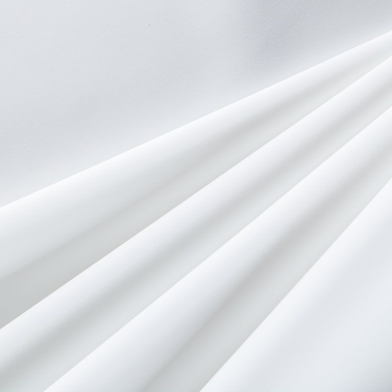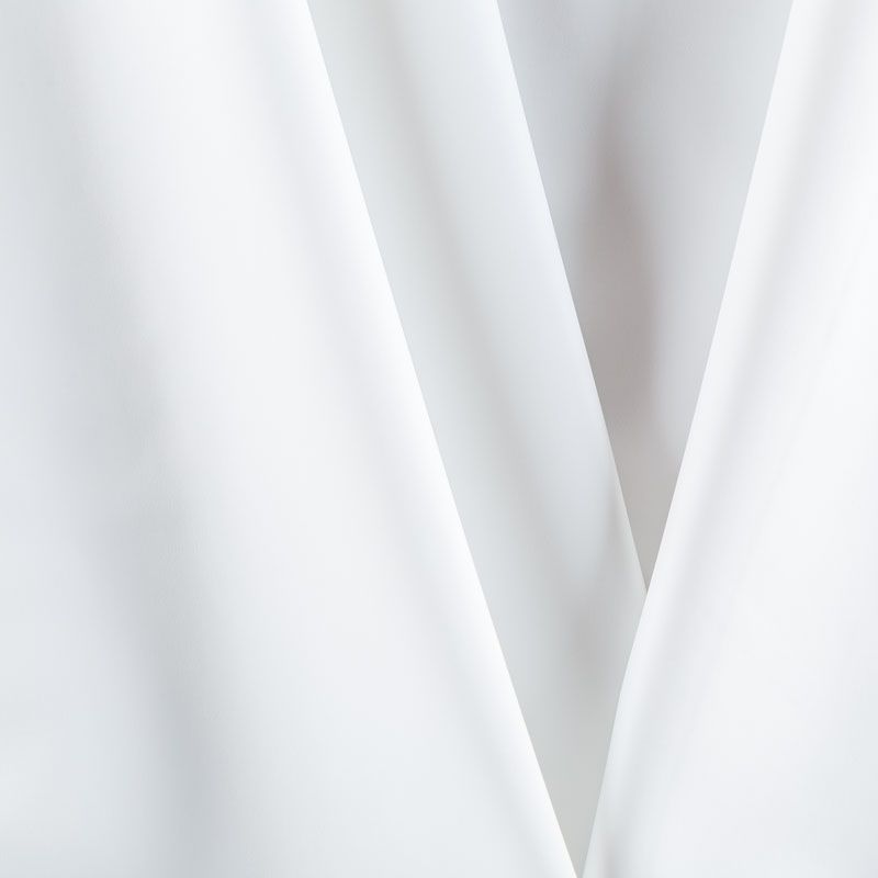 Плотная прочная плащевая ткань белого цвета с полиуретановым белым покрытием с изнаночной стороны. Поверхность ткани матовая, ровная и гладкая. Подходит для изготовления  плащей, курток, ветровок, бомберов, одежды для домашних питомцев, туристического снаряжения.
