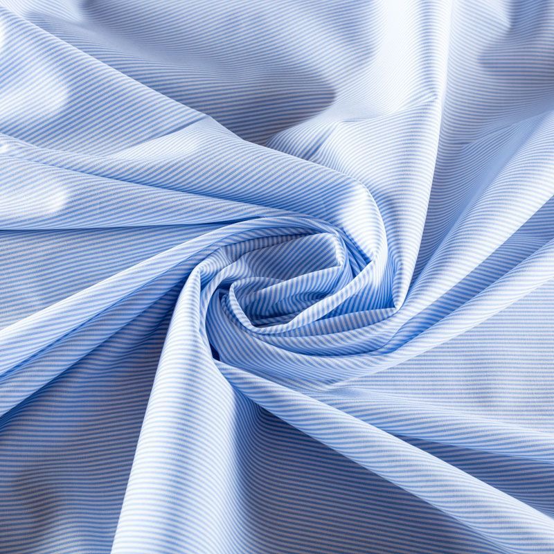 Итальянский плательно-рубашечный хлопок в бело-голубую тонкую полоску. Ткань мягкая, лёгкая, непрозрачная, пластичная и приятная к телу, хорошо драпируется, имеет гладкую матовую поверхность и сатиновое плетение. Прекрасно подойдет как для пошива платья-рубашки, сарафана, платьев различных фасонов, туники, топа, летнего костюма, комбинезона, мужской и детской одежды.