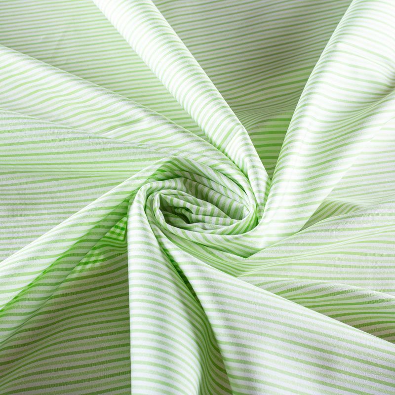 Итальянский плательно-рубашечный хлопок в бело-салатовую тонкую полоску. Ткань мягкая, лёгкая, непрозрачная, пластичная и приятная к телу, хорошо драпируется, имеет гладкую матовую поверхность и полотняное плетение. Прекрасно подойдет как для пошива платья-рубашки, сарафана, платьев различных фасонов, туники, топа, летнего костюма, комбинезона, мужкой и детской одежды.