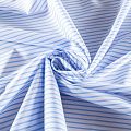 Итальянский плательно-рубашечный хлопок в бело-голубую полоску средней ширины. Ткань мягкая, лёгкая, непрозрачная, пластичная и приятная к телу, хорошо драпируется, имеет гладкую матовую поверхность и сатиновое плетение. Прекрасно подойдет как для пошива платья-рубашки, сарафана, платьев различных фасонов, туники, топа, летнего костюма, комбинезона.