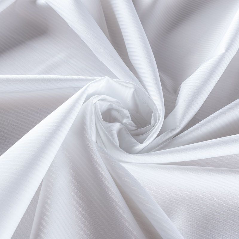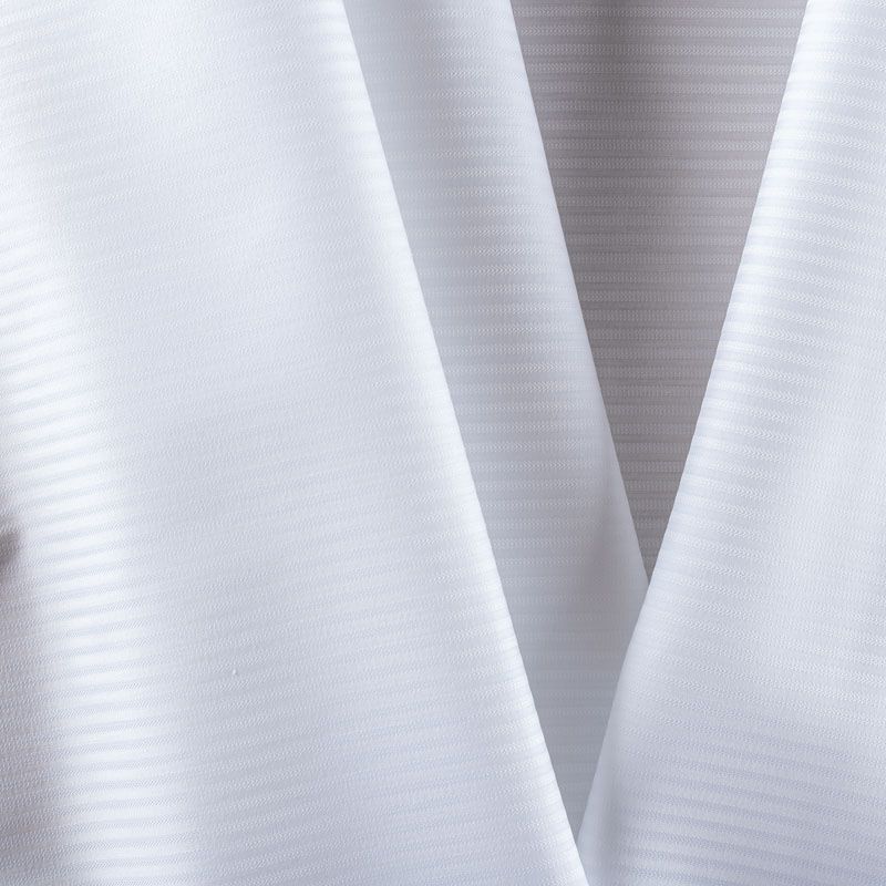 Белоснежный итальянский плательно-сорочечный хлопок жаккардовой  полоской. Ткань мягкая, тонкая, лёгкая, непрозрачная, пластичная и приятная к телу, хорошо драпируется, имеет фактурную поверхность, сатиновый блеск. Прекрасно подойдет как для пошива предметов мужского гардероба, так и для блуз, платья-рубашки, сарафана, туники, топа, летнего костюма.