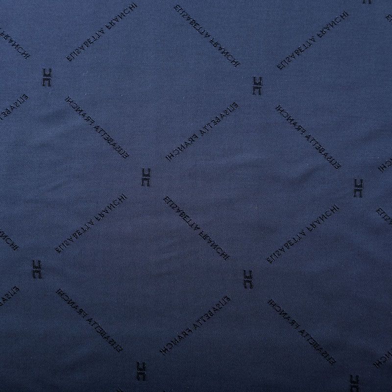 Итальянская подкладочная ткань из вискозы темно-синего оттенка с жаккардовым узором и красивым лоском. Полотно средней плотности, легкое, не просвечивает, хорошо скользит, не тянется. Подойдет для изготовления таких изделий, как пальто, костюмы, куртка, шуба, платье, жакет.