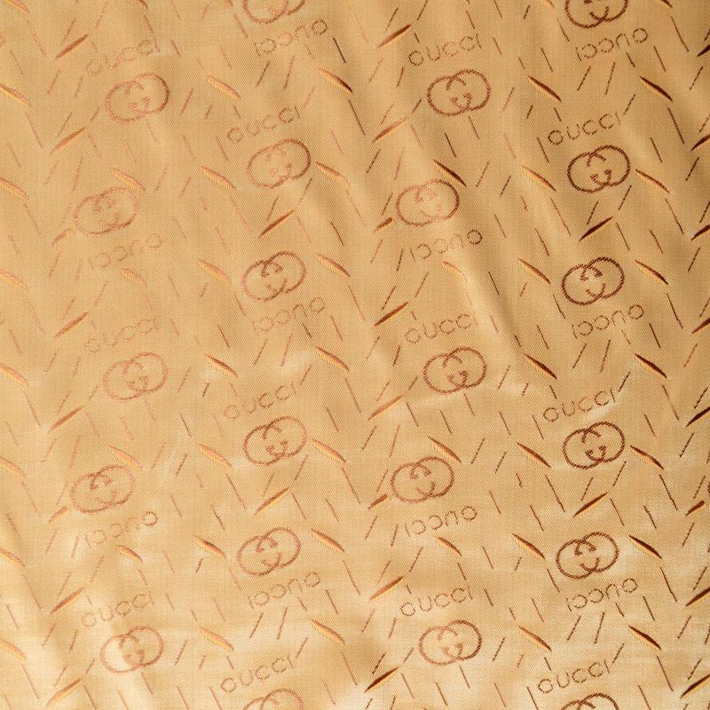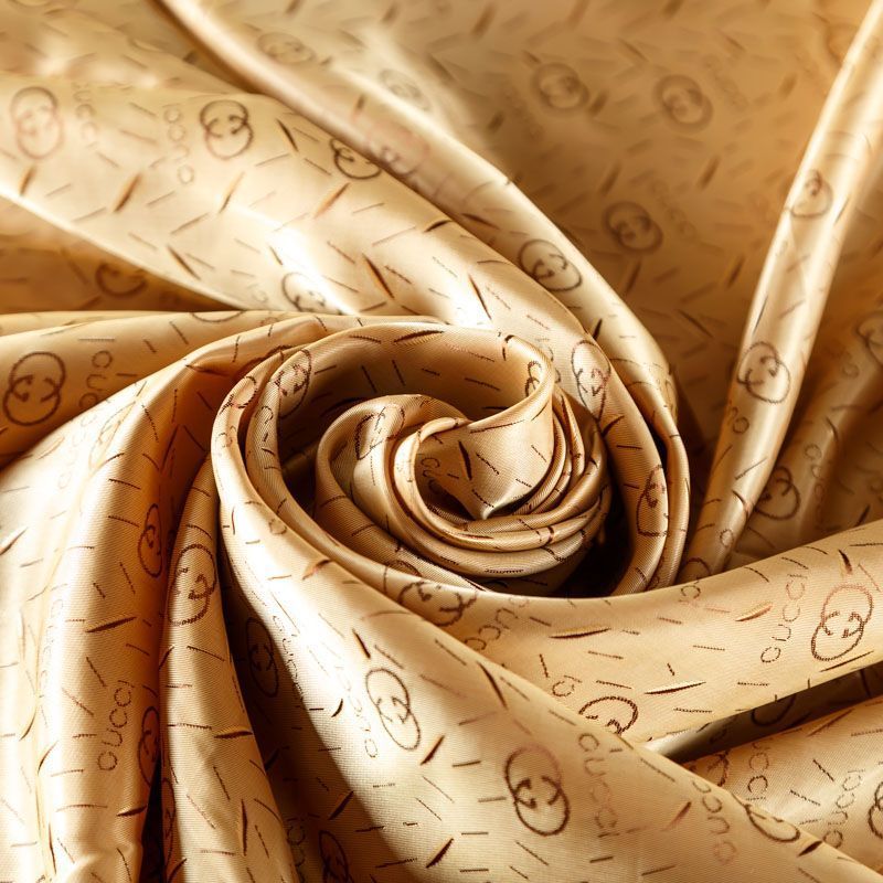 Смесовая подкладочная ткань желтого оттенка с жаккардовым узором и красивым лоском. Полотно средней плотности, легкое, не просвечивает, хорошо скользит, не тянется. Подойдет для изготовления таких изделий, как пальто, костюмы, куртка, шуба, платье, жакет.
