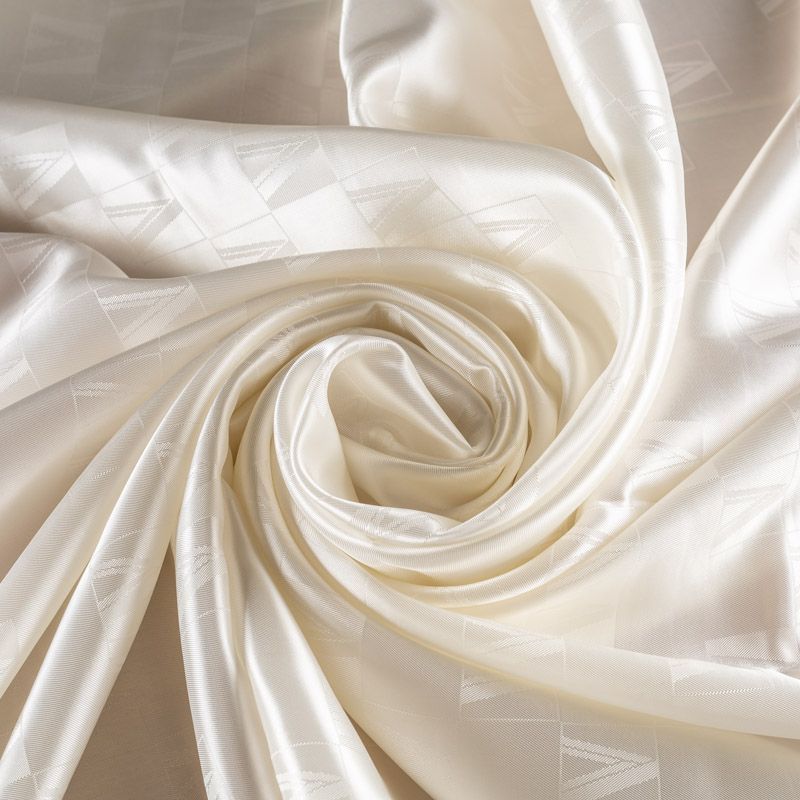 Подкладочная ткань легкая, с твиловой поверхностью и  жаккардовым геометрическим рисунком, с красивым блеском. Не просвечивает, хорошо скользит. Подойдет для изготовления таких изделий, как пальто, костюмы, куртка, шуба, платье, жакет.