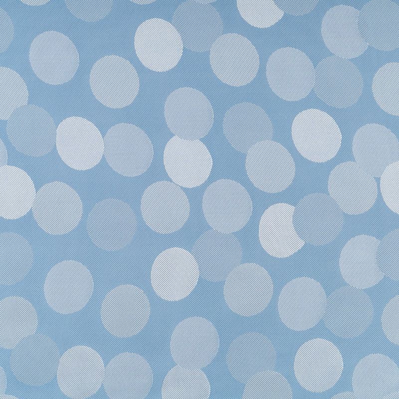 Подкладочная ткань легкая, с жаккардовым крупным "горохом", голубого оттенка, с красивым блеском. Не просвечивает, хорошо скользит. Подойдет для изготовления таких изделий, как пальто, костюмы, куртка, шуба, платье, жакет.