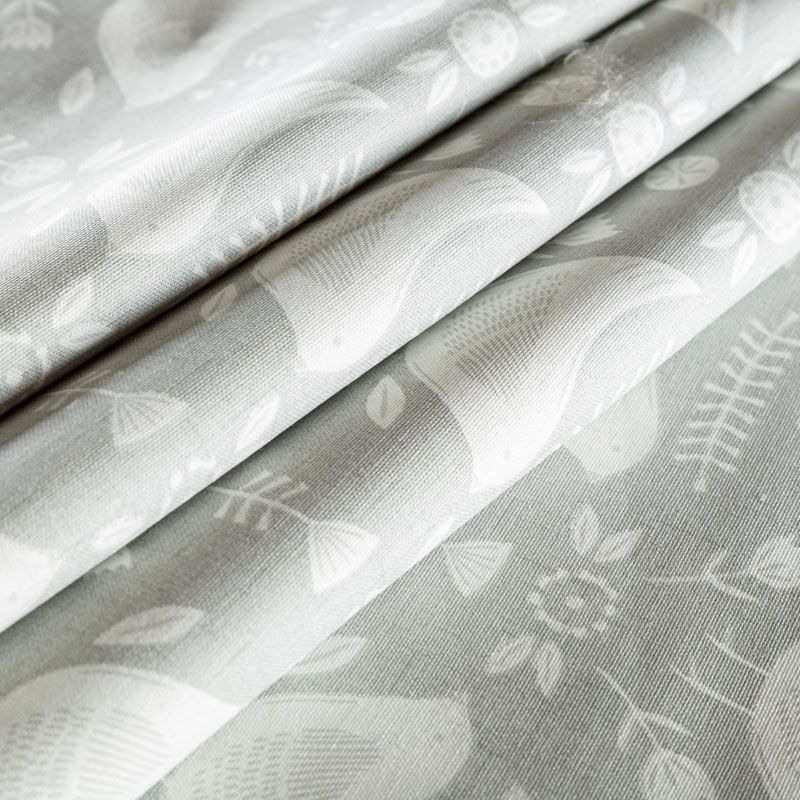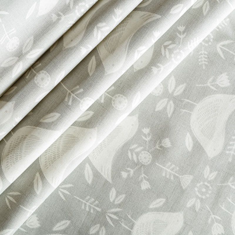 Хлопковая портьерная ткань Нарвик из коллекции Сканди английского производителя Fryett's Fabric. На светло-серой текстурированной основе наснесен принт в виде белых стилизованных птиц и цветов. Ткань средней плотности, прекрасно держит форму, драпируется в устойчивые складки. Подойдет для классических портьер, римских штор, покрывал, подушек, скатертей, салфеток и других элементов текстильного интерьера как в самостоятельном исполнении, так и качестве компаньона к однотонным варинтам.