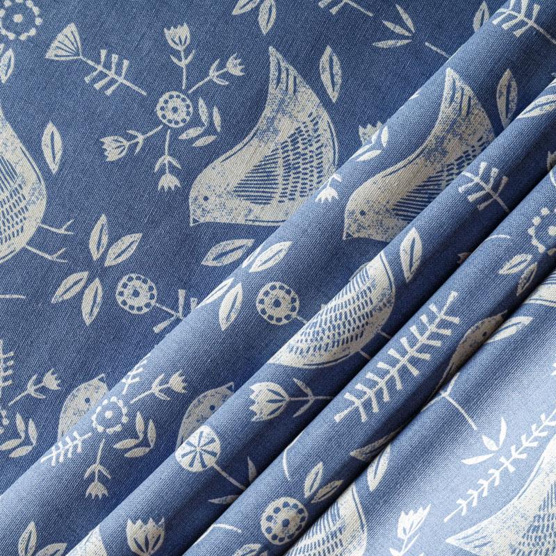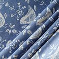 Хлопковая портьерная ткань Нарвик из коллекции Сканди английского производителя Fryett's Fabric. На синей текстурированной основе наснесен принт в виде белых стилизованных птиц и цветов. Ткань средней плотности, прекрасно держит форму, драпируется в устойчивые складки. Подойдет для классических портьер, римских штор, покрывал, подушек, скатертей, салфеток и других элементов текстильного интерьера как в самостоятельном исполнении, так и качестве компаньона к однотонным варинтам.