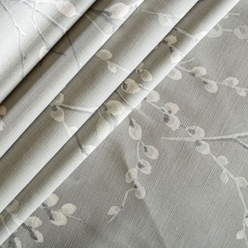 Хлопковая портьерная ткань с изящным весенним принтом в сдержанных серых оттенках. Ткань средней плотности, без блеска, хорошо драпируется, имеет полонтяное переплетение. Можно использовать для пошива портьер, римской шторы, салфеток, столового белья, подушек, покрывал и других предметов текстильного интерьера.