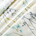 Натуральная хлопковая портьерная ткань с принтом полевых растений в пастельных нежных оттенках. Ткань средней плотности, без блеска, хорошо драпируется, имеет полонтяное переплетение. Прекрасно подойдет для оформления детской, кухни, столовой или дачного интерьера. Можно использовать для пошива портьер, римской шторы, салфеток, столового белья, подушек, покрывал и других предсетов текстильного интерьера.