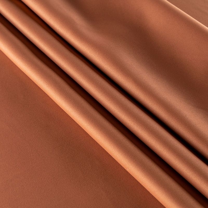 Двухстороняя плотная ткань. Обе стороны гладкие, имеют сатиновый легкий глянец. Ткань хорошо драпируется, укладываясь в крупные ниспадающие пластичные складки и позволяет использовать любые виды крепления для штор – люверсы, ленту, кольца. Блокирует от 30 до 70 % проникновение света в помещении, не склонна к выгоранию и деформации. Удачно впишется в такие интерьеры, как эко, лофт, модерн в качестве портьер и других элементов текстильного оформления.