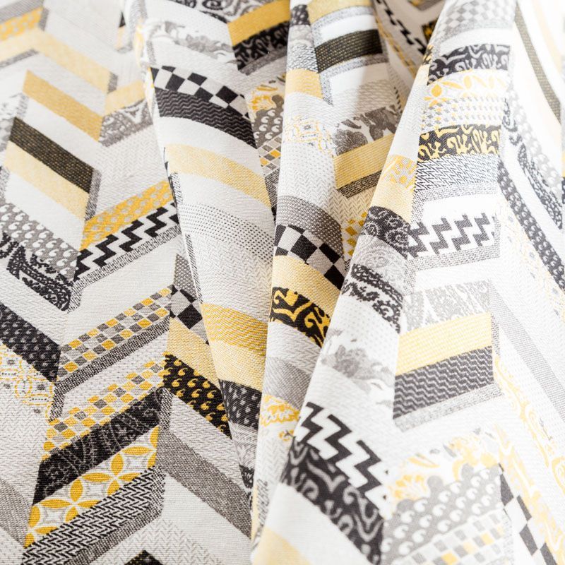 Декоративный смесовый хлопок с геометрическим орнаментом от испанского производителя Visatex. Ткань средней плотности, приятная и гладкая на ощупь. Интересный вариант для пошива штор, декоративных подушек и покрывал, изготовления текстильных элементов в кухнях-столовых, гостинных, спальнях и даже детских.