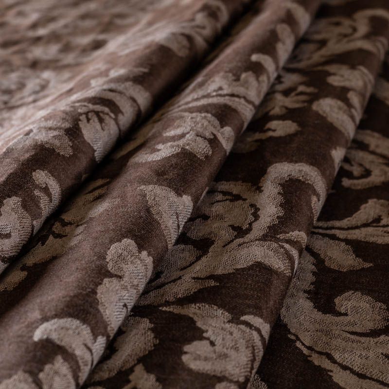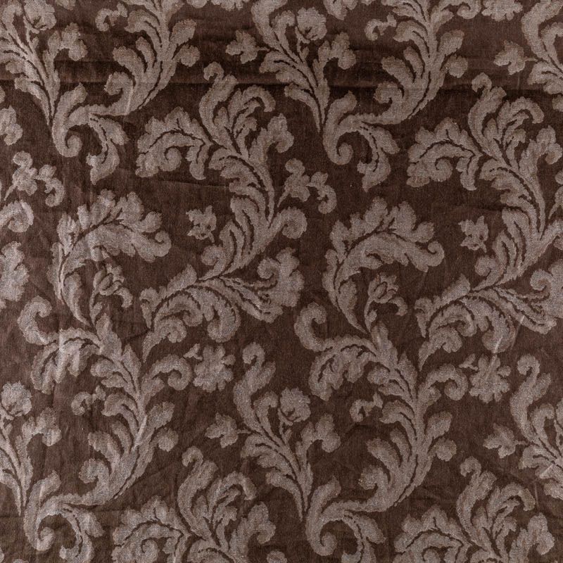 Натуральная льняная жаккардовая портьера с классическим растительным орнаментом в шоколадной цветовой гамме. Ткань плотная, тяжелая, может драпироваться в большие складки. Лен подойдет для плотных штор, покрывал, подушек, скатертей и салфеток, обивки мебели, Прекрасно впишется в интерьер как в совеременном стиле, так и в стиле прованс.