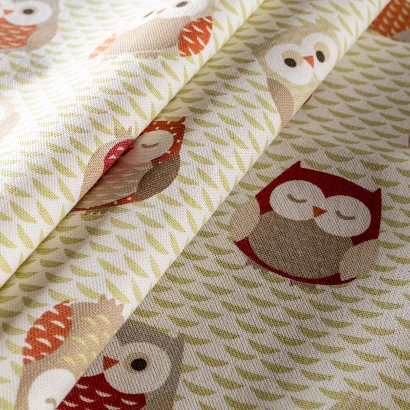 Натуральная хлопковая портьерная ткань из коллекции Время новинок известного бренда Fryett's с милым ярким принтом в виде совушек. Ткань средней плотности, без блеска, хорошо драпируется, имеет полонтяное переплетение. Прекрасно подойдет для оформления детской или дачного интерьера. Можно использовать для пошива портьер, римской шторы, салфеток, столового белья, подушек, покрывал, обивки мебели.