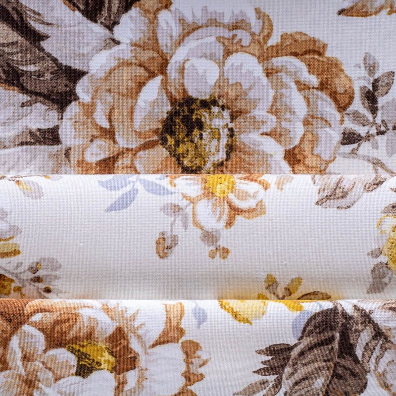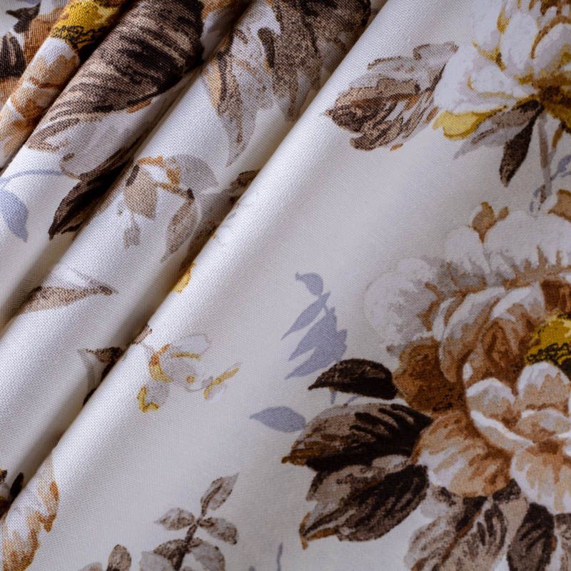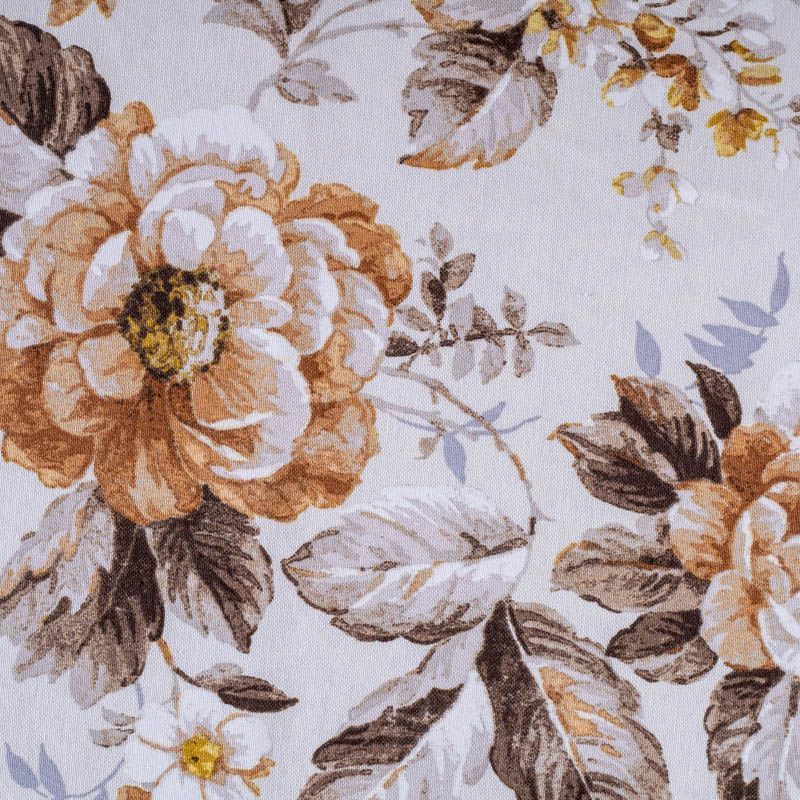 Принтованная ткань с ярким цветочным дизайном, выполненный на смесовой основе. Ткань прекрасно подходят для оформления интерьеров в английском стиле. Цветочные букеты в коричнево-желтых оттенках с крупными бутонами представлены на рубчатой плотной основе полотняного плетения. Подойдет для пошива портьер, римской шторы, покрывала, чехлов для мебели, скатертей, салфеток, подушек.