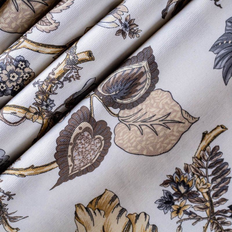 Принтованная ткань с цветочным дизайном, выполненный на смесовой основе. Ткань прекрасно подходят для оформления интерьеров в английском стиле. Фантазийные растения в коричнево-серых оттенках с крупными листьями представлены на рубчатой плотной основе полотняного плетения. Подойдет для пошива портьер, римской шторы, покрывала, чехлов для мебели, скатертей, салфеток, подушек.