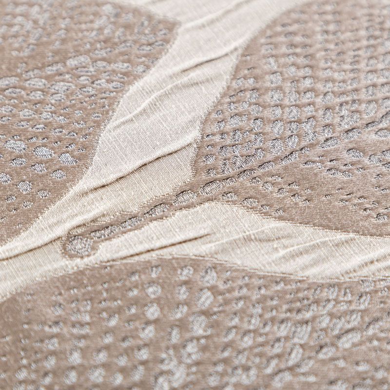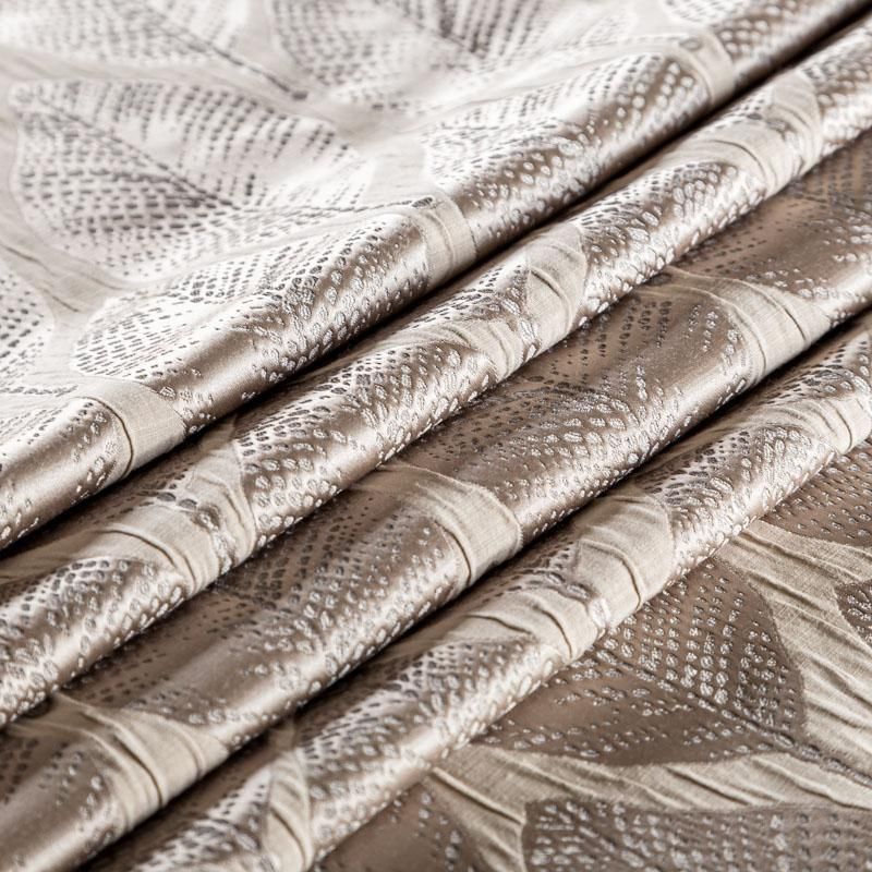Стильная жаккардовая ткань светло-коричневого оттенка с потрясающим геометрическим стилизованным дизайном листьев из коллекции Акация известного бренда Fryett's. Ткань высокой плотности, имеет фактурную поверхность и сдержанный сатиновый блеск, прекрасно держит форму. Ткани этой коллекции прекрасно впишутся в традиционный и современный интерьер в качестве римской или классической шторы, подушек, обивки мебели.