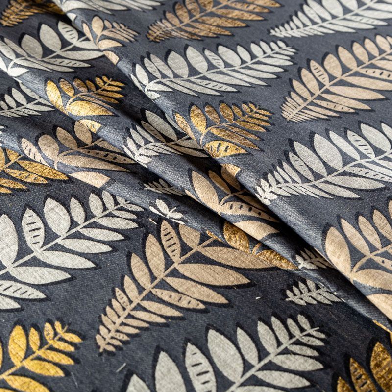 Стильная жаккардовая ткань темно-серого цвета с растительным дизайном из коллекции Анкона известного бренда Fryett's. Ткань высокой плотности, имеет матовую фактурную поверхность, прекрасно держит форму. Ткани этой коллекции прекрасно впишутся в традиционный и современный интерьер в качестве римской или классической шторы, подушек, обивки мебели.
