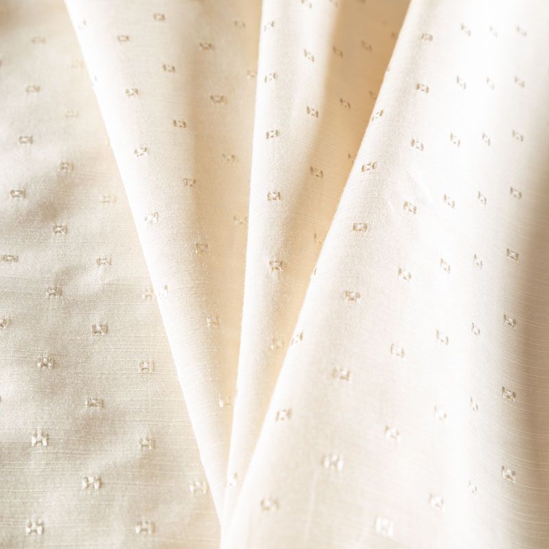 Изысканная портьерная ткань на хлопковой основе от известного бренда Fryett's с фактурной поверхностью, которая имитирует дикий шелк. Ткань средней плотности имеет сдержанный благородный блеск, хорошо держит форму и драпируется. Подойдет для портьер, римсой шторы, покрывал, подушек, скатертей, салфеток  и других элементов текстильного интерьера как в самостоятельном исполнении, так и качестве компаньона к цветным варинтам.