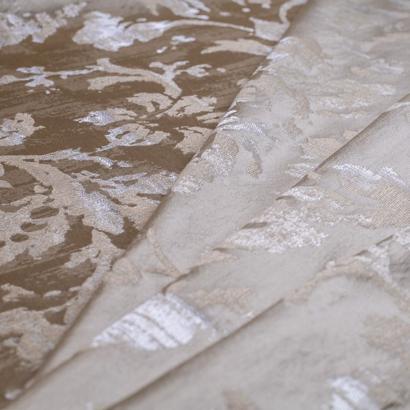 Итальянская жаккардовая портьерная ткань в благородной цветовой гамме с цветочно-растительным орнаментом. Ткань хорошо драпируется. За счет сочетания шелковых и льняных нитей рисунок как будто вытравлен на поверхности ткани. Подходит для пошива штор, ламбрекенов, покрывал, наволочек, чехлов на мебель и других элементов декора для стилизованных классических интерьеров.
