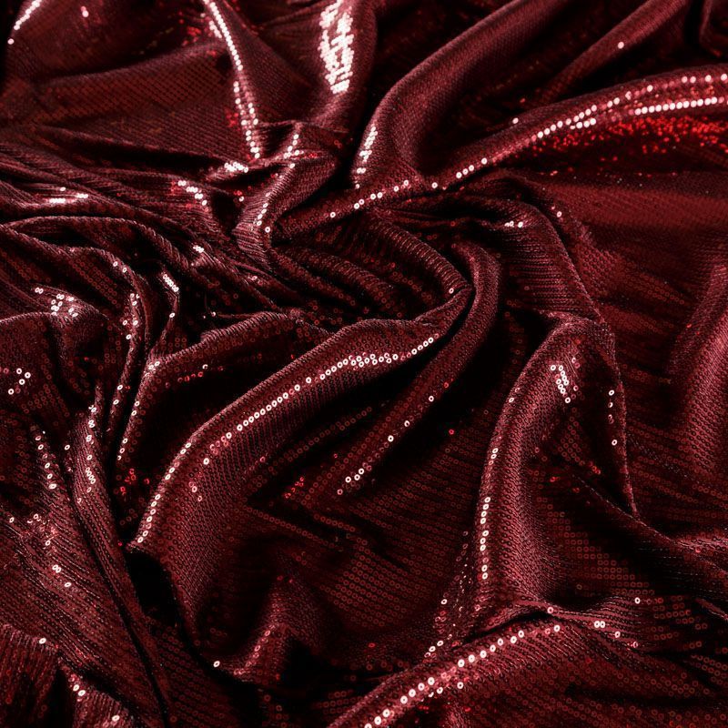 Блестящие пайетки благородного багрового оттенка. Мелкие, размером около 3 мм. Основа - трикотажное полотно, комфортное в носке. Ткань не прозрачная, тянется. Подойдет для вечернего коктельного платья или юбки, комбинезона, топа, танцевальных и сценических костюмов.
