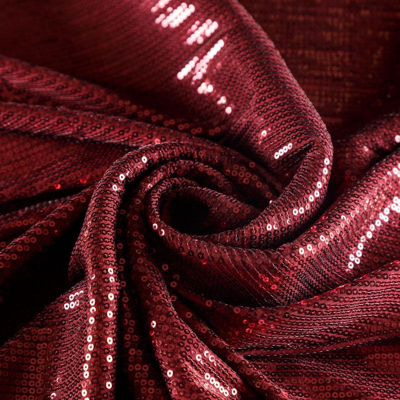 Блестящие пайетки насыщенного вишневого оттенка. Мелкие, размером около 3 мм. Основа - трикотажное полотно, комфортное в носке. Ткань не прозрачная, тянется.  Подойдет для вечернего коктельного платья или юбки, комбинезона, топа, танцевальных и сценических костюмов.