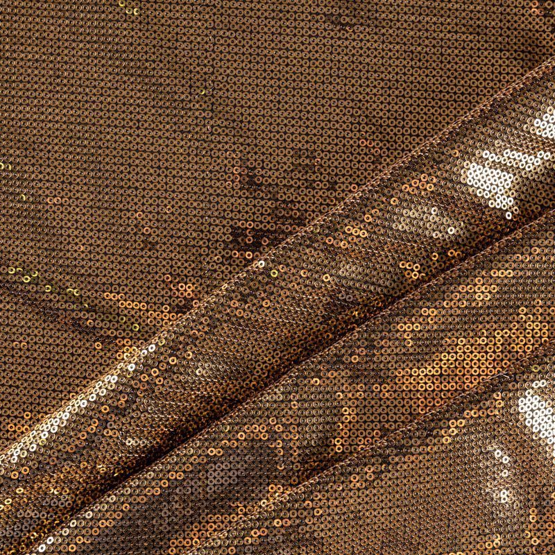 Блестящие пайетки золотого оттенка. Мелкие, размером около 3 мм. Основа - черное трикотажное полотно, комфортное в носке. Ткань не прозрачная, тянется.  Подойдет для вечернего коктельного платья или юбки, комбинезона, топа, танцевальных и сценических костюмов.