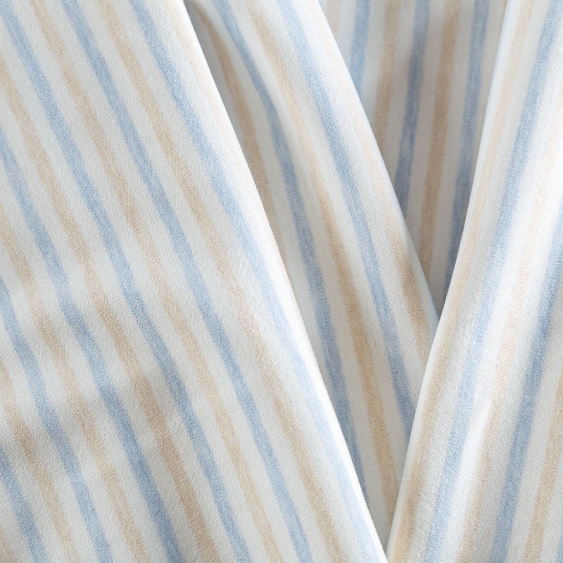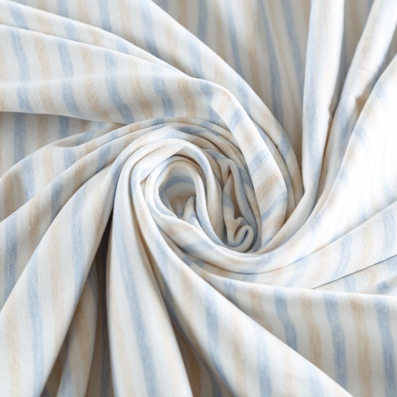 Хлопковый трикотаж качества пенье в полоску. Поверхность ткани гладкая, полотно средней плотности, не толстое, мягкое и нежное на ощупь, тянется за счет эластана в составе. Прерасно подойдет для пошива детской одежды, постельного белья и комплектов в кроватку, пижамы, домашней и летней одежды.