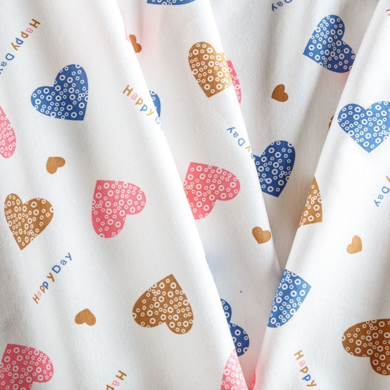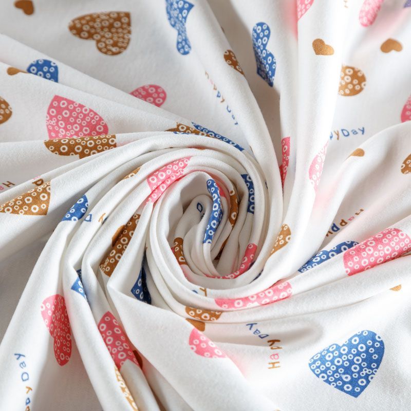 Хлопковый трикотаж качества пенье с милым принтом. Поверхность ткани гладкая, полотно средней плотности, не толстое, мягкое и нежное на ощупь, тянется за счет эластана в составе. Прерасно подойдет для пошива детской одежды, постельного белья и комплектов в кроватку, пижамы, домашней и летней одежды.