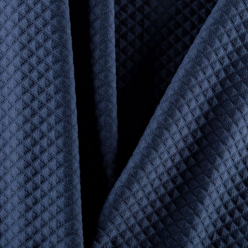 Плотное трикотажное полотно с имитацией стежки. Поверхность ткани объемная, мягкая, приятная на ощупь. Трикотаж не просвечивается, хорошо тянется за счет эластана в составе, держит форму. Прекрасно подойдет для пошива легких пальто, курток, бомберов, кардиганов, платьев, юбок, шорт.