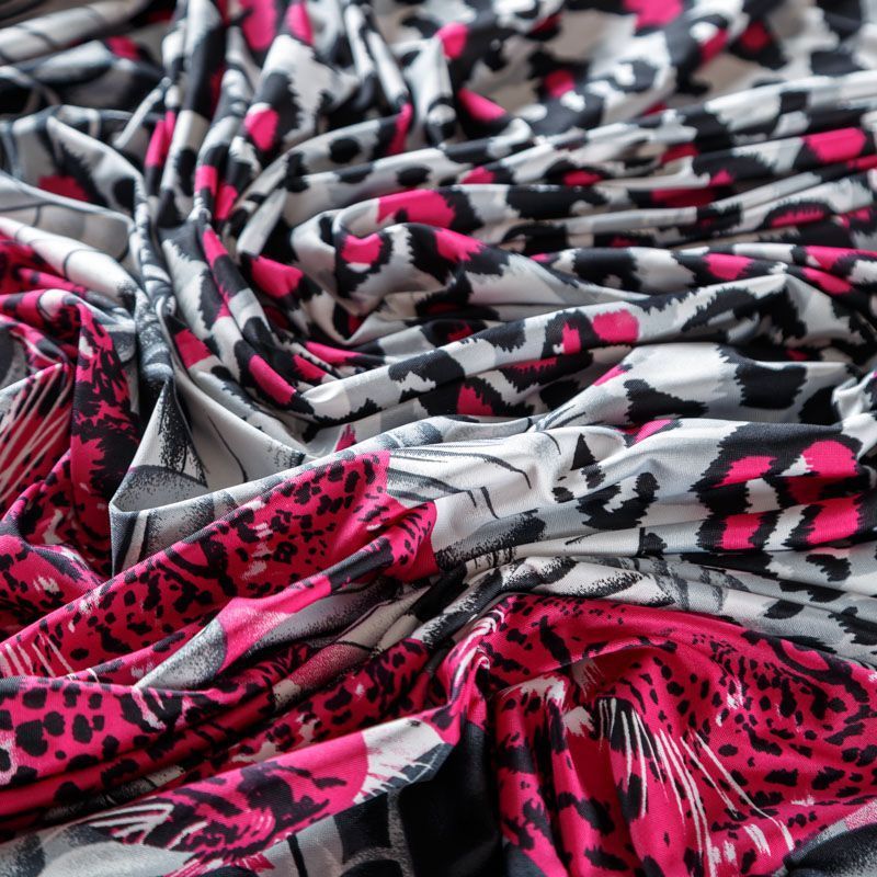 "Холодный" трикотаж средней плотности, хорошо тянется за счет эластана в составе. Ткань не сухая, мягкая, не просвечивает, хорошо драпируется. Отлично подойдет для пошива платья, туники, лонгслива, топа, юбки.