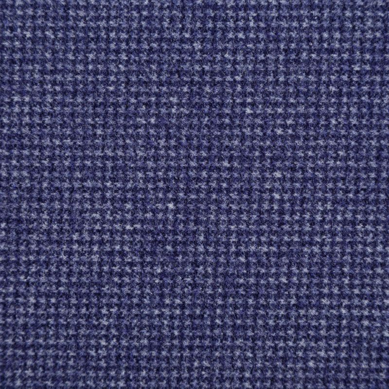 Трикотаж средней толщины, хорошо тянется за счет эластана в составе. Мелкий ненавязчивый узор "гусиная лапка" образуется переплетением фиолетово-синих и белых нитей. Ткань не сухая, мягкая, но плотная, не просвечивает, теплая, хорошо драпируется. Отлично подойдет для пошива легкой верхней одежды, жакетов, костюмов, юбок.
