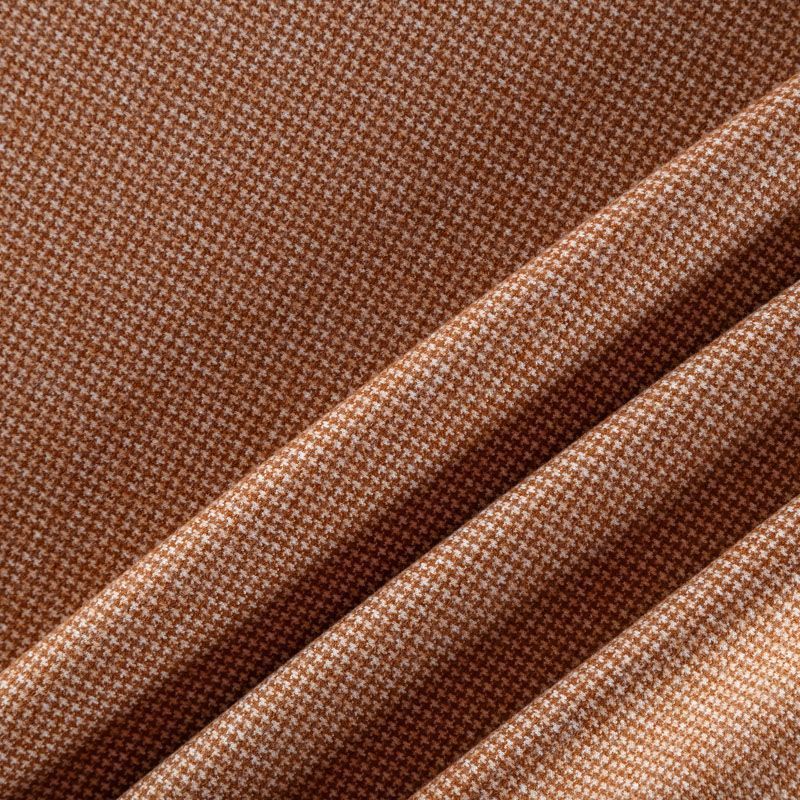 Трикотаж средней толщины, хорошо тянется за счет эластана в составе. Мелкий ненавязчивый узор "гусиная лапка" образуется переплетением бежевых и молочных нитей. Ткань не сухая, мягкая, но плотная, не просвечивает, теплая, уютная, хорошо драпируется. Отлично подойдет для пошива легкой верхней одежды, жакетов, костюмов, юбок.