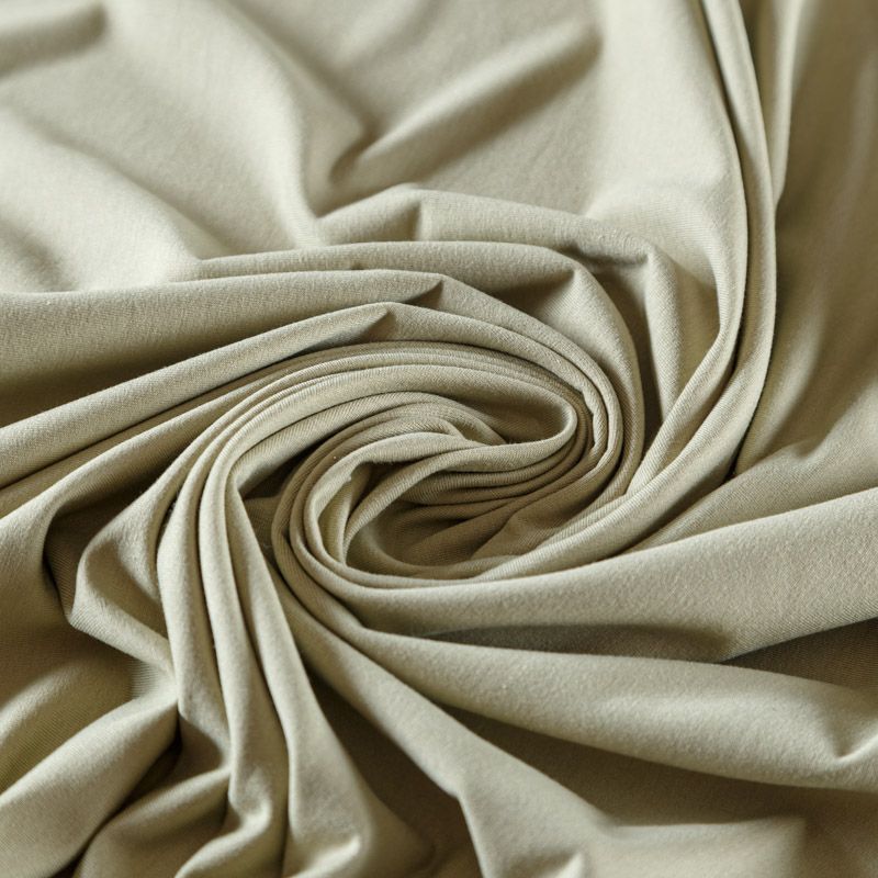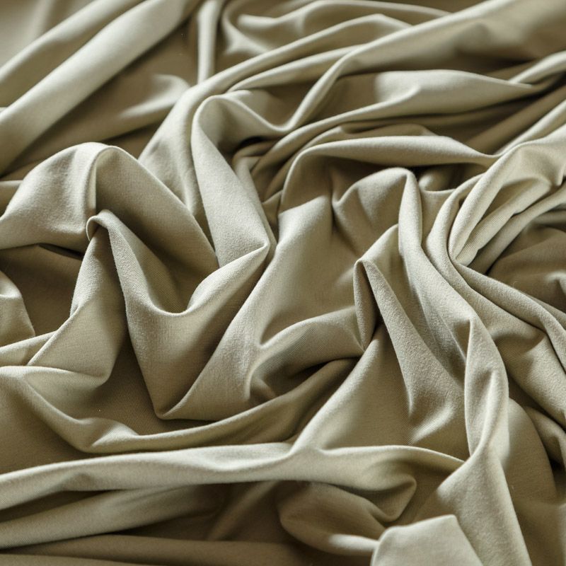 Смесовое трикотажное полотно с гладкой однородной поверхностью, которое особенно эффектно смотрится в драпировке. Материал средней плотности, не просвечивает, приятный к телу и комфортный в носке. Подойдет для пошива топов, футболок, бадлонов, лонгслива, кардигана, спортивного платья, джоггеров, шорт.