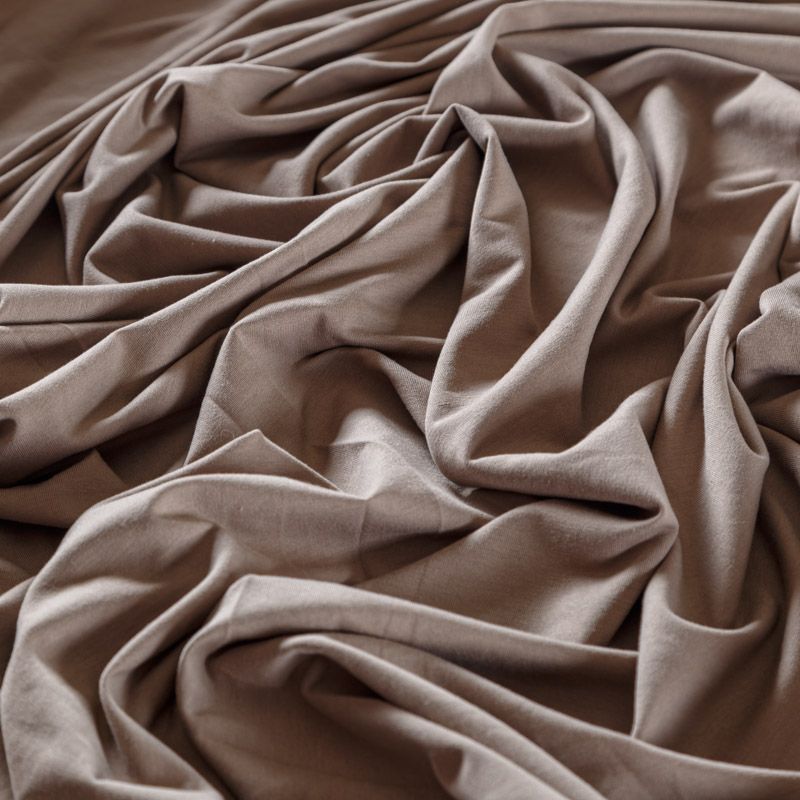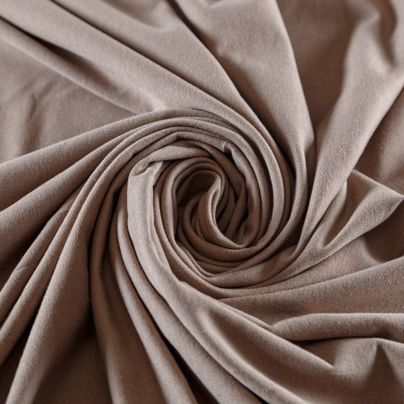 Смесовое трикотажное полотно с гладкой однородной поверхностью, которое особенно эффектно смотрится в драпировке. Материал средней плотности, не просвечивает, приятный к телу и комфортный в носке. Подойдет для пошива топов, футболок, бадлонов, лонгслива, кардигана, спортивного платья, джоггеров, шорт.