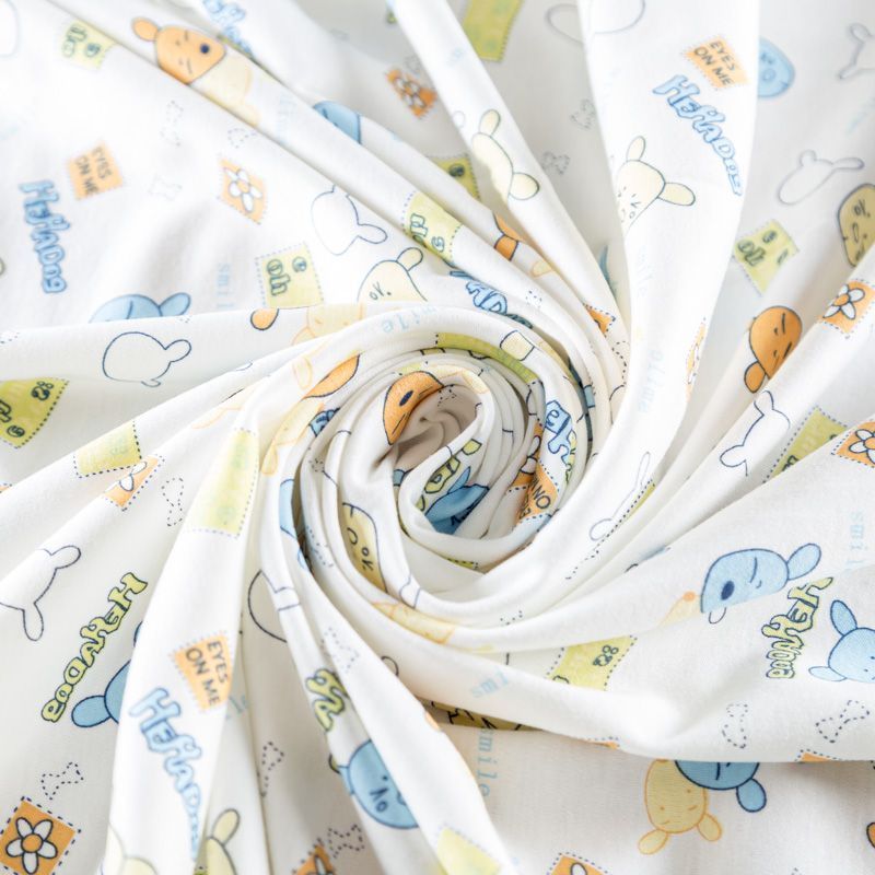 Приятный на ощупь, гладкий хлопковый трикотаж-кулирка с эластаном, средней плотности с веселым детским принтом. Подойдет для пошива нижнего белья, изделий для детей, а также для спортивной и домашней одежды, пижамы.