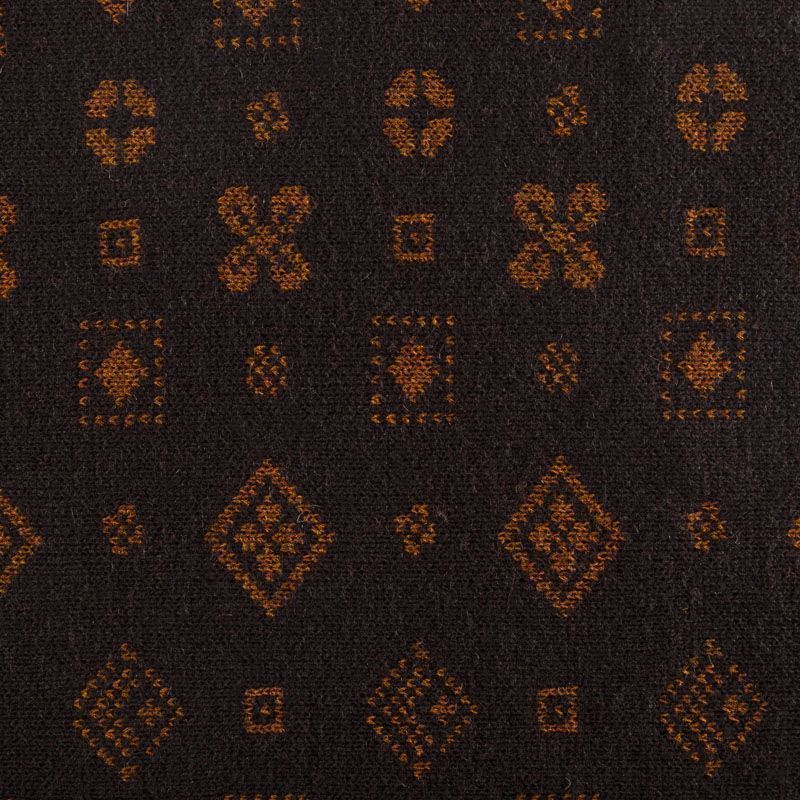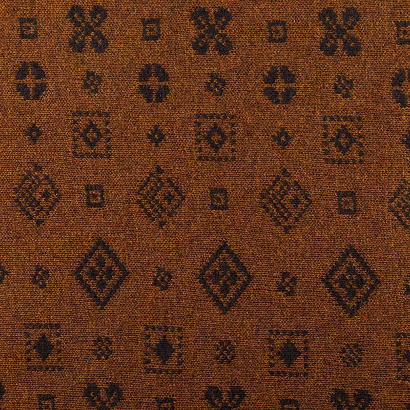 Итальянский теплый мягкий вязаный шерстяной трикотаж, два слоя которого соединены между собой жаккардовым геометрическим узором. Полотно очень пластичное, приятное на ощупь, не колется. При соответствующей обработке швов одежду из этого трикотажа можно носить на обе стороны. Подойдет для пошива теплых уютных свитеров, кардиганов, пальто, костюмов, теплого платья, свитшота, джемпера.