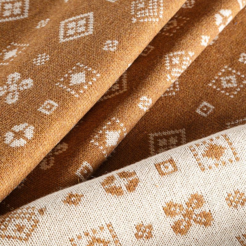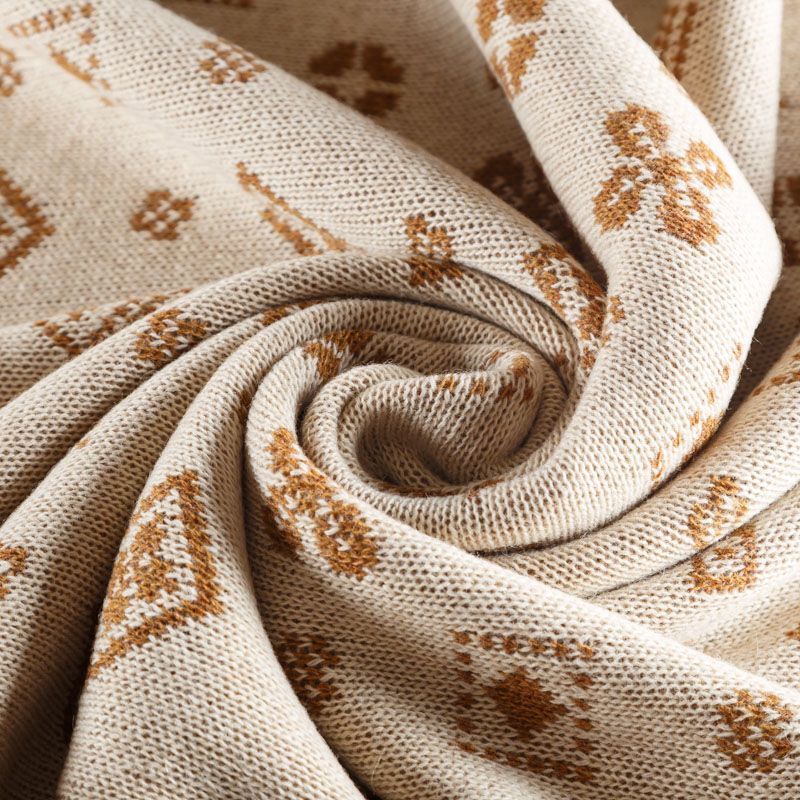 Итальянский теплый мягкий вязаный шерстяной трикотаж, два слоя которого соединены между собой жаккардовым геометрическим узором. Полотно очень пластичное, приятное на ощупь, не колется. При соответствующей обработке швов одежду из этого трикотажа можно носить на обе стороны. Подойдет для пошива теплых уютных свитеров, кардиганов, пальто, костюмов, теплого платья, свитшота, джемпера.