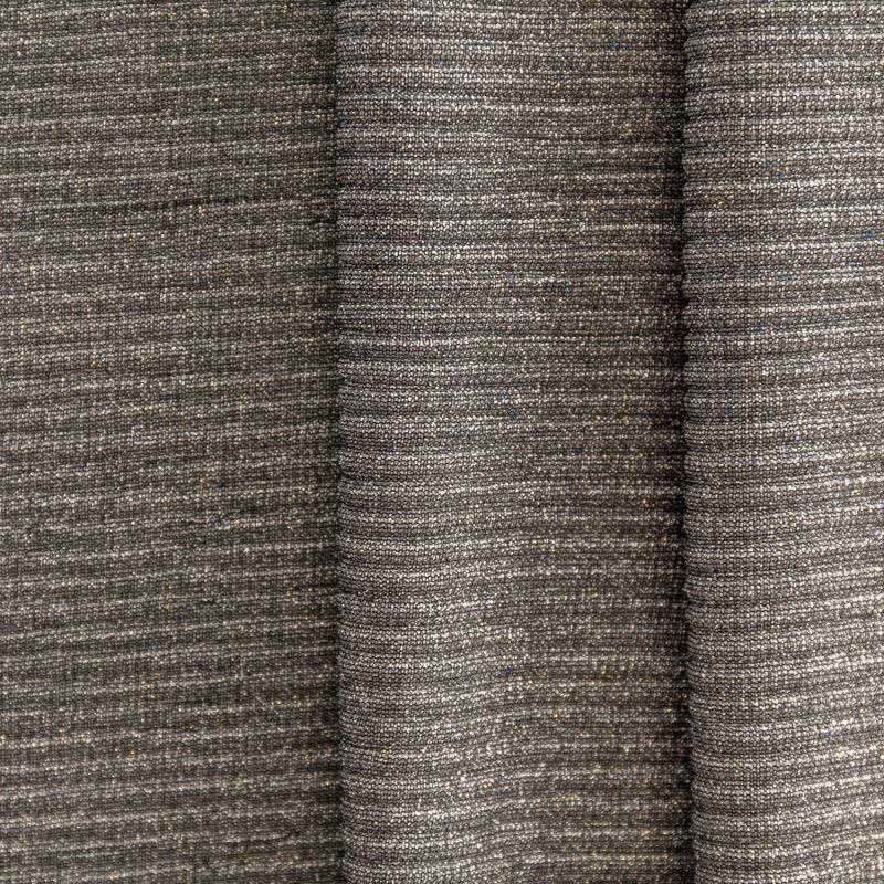 Легкая, слегка прозрачная ткань, с высокой степенью эластичности, поверхность рельефная за счет эффекта гофре и мерцающая за счет напыленного  люрекса. Идеальна для облегающих изделий с использованием подклада, платья, топа, юбки, брюк, кардигана. Полоски гофре расположены поперек кромки, набирается объемом.
