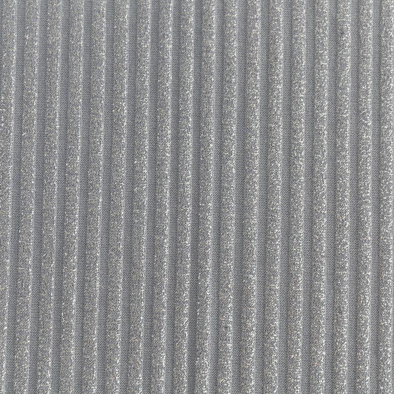Трикотаж-лапша средней плотности, с высокой степенью эластичности, поверхность рельефная за счет эффекта резинки и мерцающая за счет металлизированного напыления. С изнанки трикотаж гладкий, комфортный, подходит для использования без подклада. Сшить из такого полотна можно водолазки, платья, топы, юбки, комплекты, нарядные изделия. Направление полос - вдоль линии кромки.