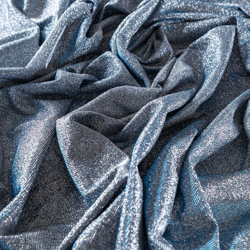Трикотаж с люрексом 056-06049 серебристо-синий однотонный