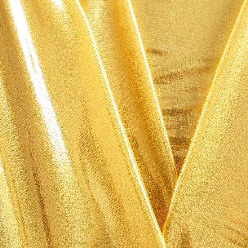 Эффектное трикотажное полотно с мерцающим напылением. Материал очень пластичный, образует струящиеся мягкие складки, отлично тянется, не просвечивает, не мнется. Изнаночная сторона матовая, приятная на ощупь. Идеальный выбор для нарядных платьев, топов, маек, гимнастических и танцевальных костюмов.