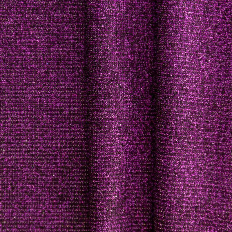 Мягкое и эффектное трикотажное полотно с металлизированным напылением. Структура полотна плотная, легко растяжимая, эластичная. С лицевой стороны поверхность ткани  слегка шероховатая на ощупь, характеризуется заметным блеском «металлик». С изнанки трикотаж гладкий, комфортный, подходит для использования без подклада. Отлично пододет для пошива водолазки, платья, топа, леггинсов, спортивных купальников, нарядных изделий.