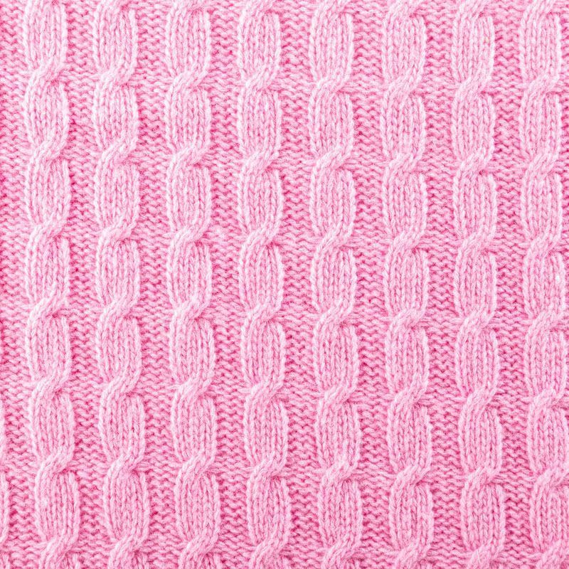 Итальянский шерстяной трикотаж розового оттенка с ажурными вязаными "косами". Полотно плотное, мягкое, эластичное, не просвечивает. Прекрасно подойдет для пошива теплых и уютных свитеров, кардиганов, жилета, платьев, шарфов, палантинов, пончо или снудов.