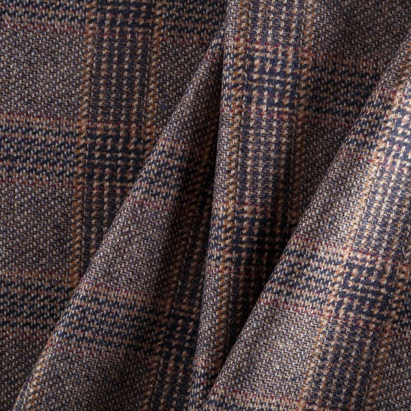 Фактурная твидовая ткань в красивую серо-коричневую клетку тартан. Ткань мягкая, пластичная, приятная на ощупь. Хорошо драпируется и образует формоустойчивые складки. Твид отлично подходит для пошива костюмов, пальто, пиджаков, брюк и курток, юбок, жилетов, головных уборов в классическом стиле.